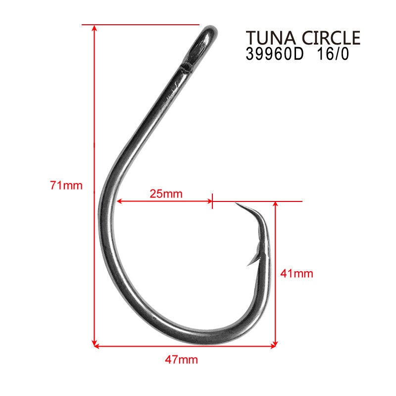 We are offering 10Pcs high quality Chemically Sharpened tuna circle hooks size 16/0 (the hooks’ code 39960D).