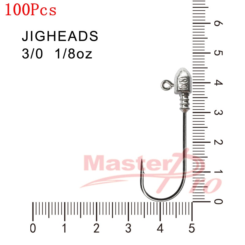100 Size 3/0, 1/8 OZ Jig Heads High Chemically Sharpened Hooks Fishing Tackle Hooks size: 3/0 Weight: 1/8OZ