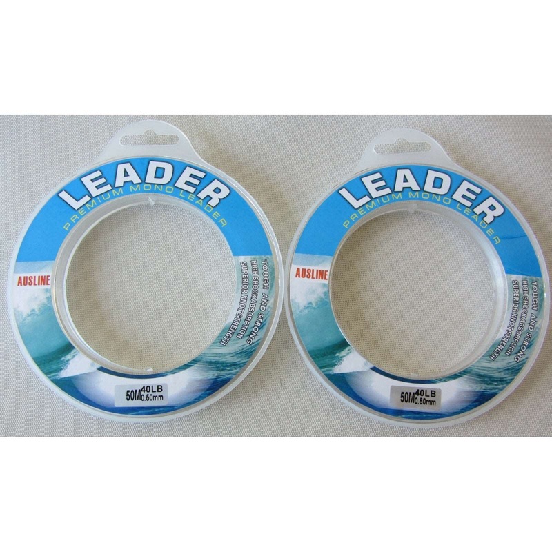 We are offering on 2 spools of Premium Monofilament Leader (50m/each spool) in 40lb, dia 0.50mm. These monofilament leader features: extreme shock strength, excellent abrasion resistance, high knot strength and out standing clarity,these leaders are in con