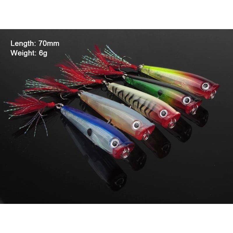What's up for grabs? 5 X Fishing Transparent Popper Lures Suitable For All Fish Species 7cm, 6g A Features include: The popper fishing lures is a weapon to catch nearly all lure fishing species, such as bass, trout, bream, flathead, salmon etc. This makes