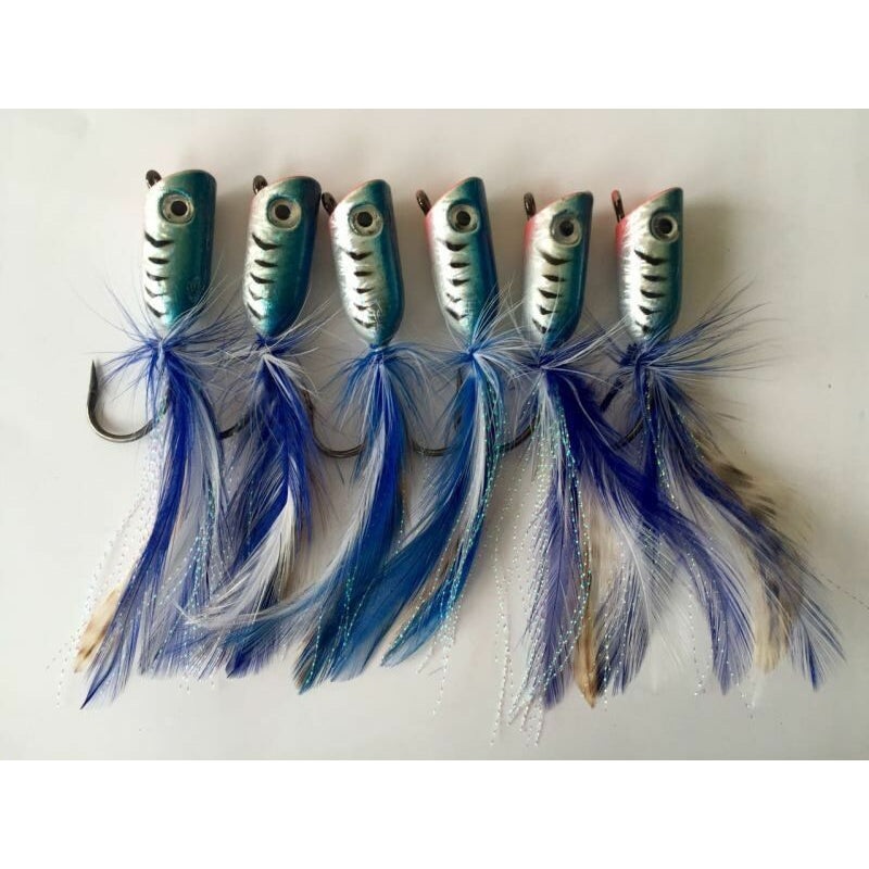 6 X Quality Huge Surf Poppers Fishing Lure On Exciting Blue Colour With 3D Eyes You are buying 6pcs new exciting laser blue coloured huge size surf poppers with 3D eyes. These surf poppers' features are: Premium quality foam bady with natural feathers New