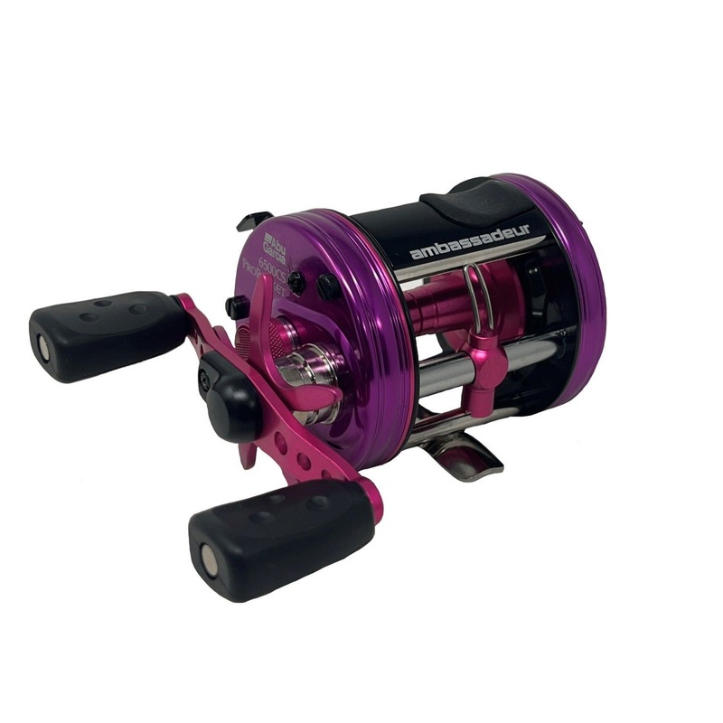 "Purple Rain" is a Hamilton Bait and Tackle custom Abu-Garcia 6500 baitcast reel. Featuring a six-pin centrifugal braking system and a robust aluminum construction. 3 stainless steel ball bearings Carbon Matrix drag system 6 pin centrifugal brake Synchroni