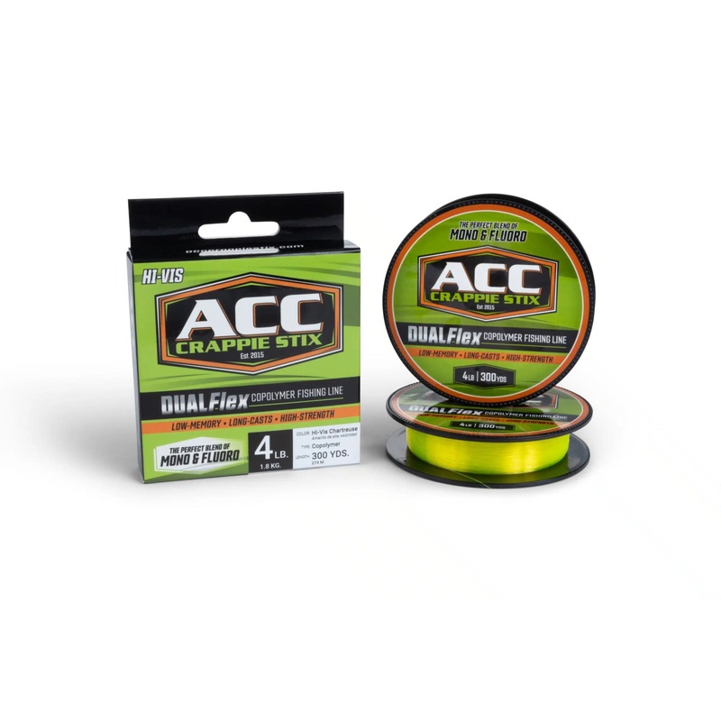 Our DUAL Flex Copolymer fishing line is the perfect blend of Mono & Fluoro! Low Memory High Strength Long Casts More Abrasion Resistant Hi-Vis Available in 4lb/6lb/8lb/10lb Hi-Vis 300 yard spools