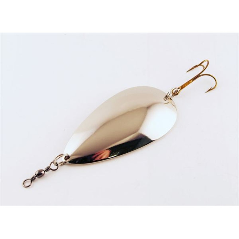 This broad 3 inch spoon is completely nickel plated to give a great long-distance flash. Suitable for pike and salmon.