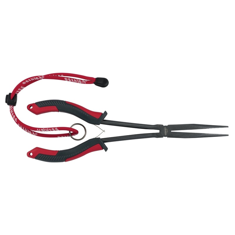 Corrosion resistant carbon steel jaws with an ergonomic co-molded handle design and adjustable lanyard create ideal pliers for managing your catch.