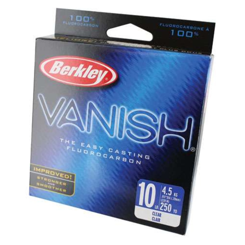 Fluorocarbon technology has now advanced past the stiff, hard leader to a soft, manageable, easy-casting fishing line. Berkley Vanish refractslight exactly like water does, making it virtually invisible to fish. Berkley Vanish just may make the difference in clear water situations where fishare highly pressured or line shy. The first truly fishable fluorocarbon line, Berkley Vanish lays out nicely and casts easily, just like nylonmonofilament, making it great for finesse presentations. Berkley Vanish doesnt absorb water, so its able to maintain 100% of its knot and linestrength when wet. And its low stretch formula increases sensitivity and handles the most powerful hook sets with outstanding fish fighting power.