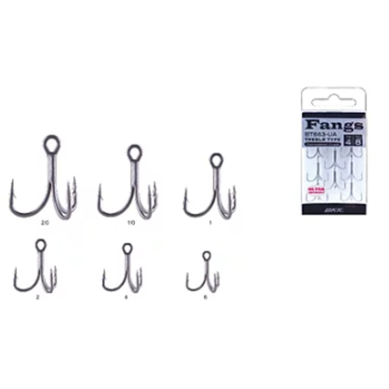 The BKK Fangs 63 UA is an all-round highly versatile 3X-strength treble hook that features BKKs ultimate Ultra-Antirust coating, which provides superior resistance to saltwater corrosion. For this reason, it is particularly recommended in salt water application.
