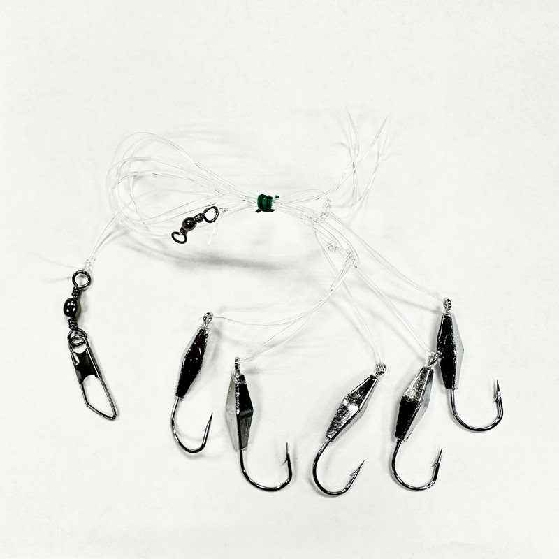 • Snap Swivel on the bottom of the rig for a weight or heavier jig