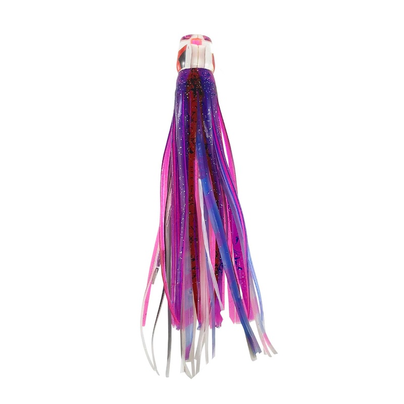 The Buku Hard Head 8.5" skirted lure is a soft head pusher with big holographic eyes. It's ideal for the shotgun position.