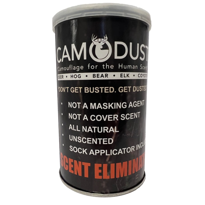 CAMO DUST is a DRY POWDER that naturally prevents odors from forming that are offensive to game. It will significantly reduce the FEAR AND FLIGHT REACTION that is the natural response when game animals detect the human scent.
