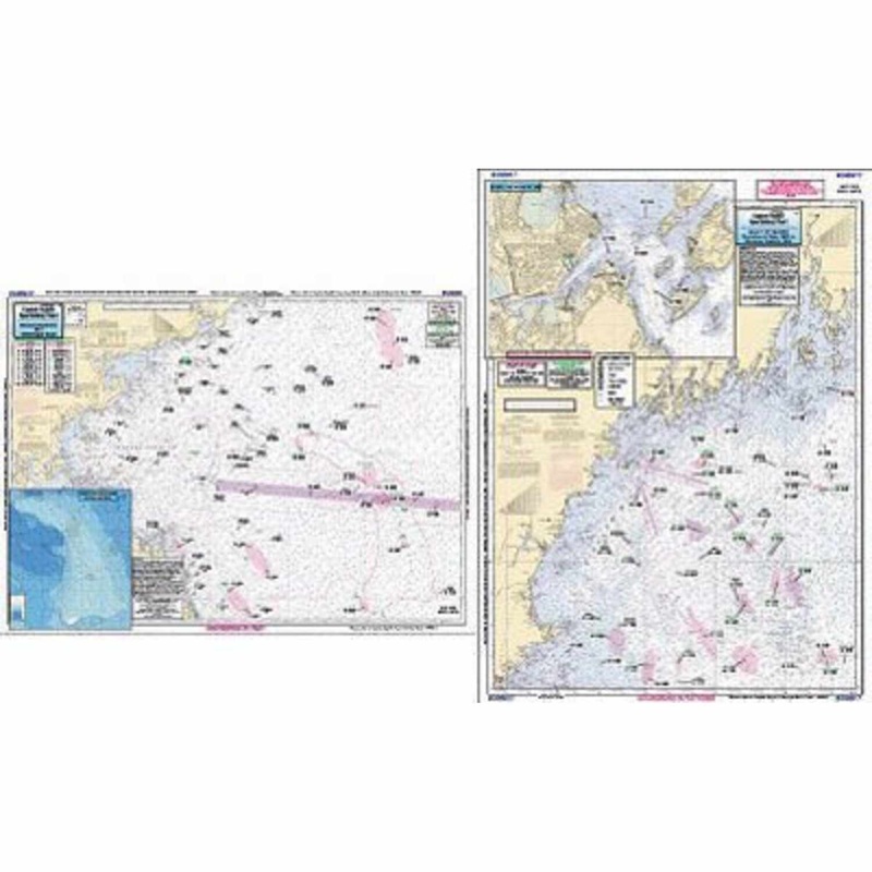 Offshore chart, Side A, the Gulf of Maine from Penobscot Bay to Boston, Massachusetts Bay, includes an inset of Portland Harbor, ME. Side B, Massachusetts Bay, Boston south to Provincetown and Duxbury, MA includes a bathymetric inset of Stellwagen Bank. Use Bathymetric charts in conjunction with this chart, Jeffrey’s Ledge area is CA201, or Cashes Ledge & Stellwagen Bank, IC209. Inshore charts in this area are NS101, BH102, DS112, WB111.