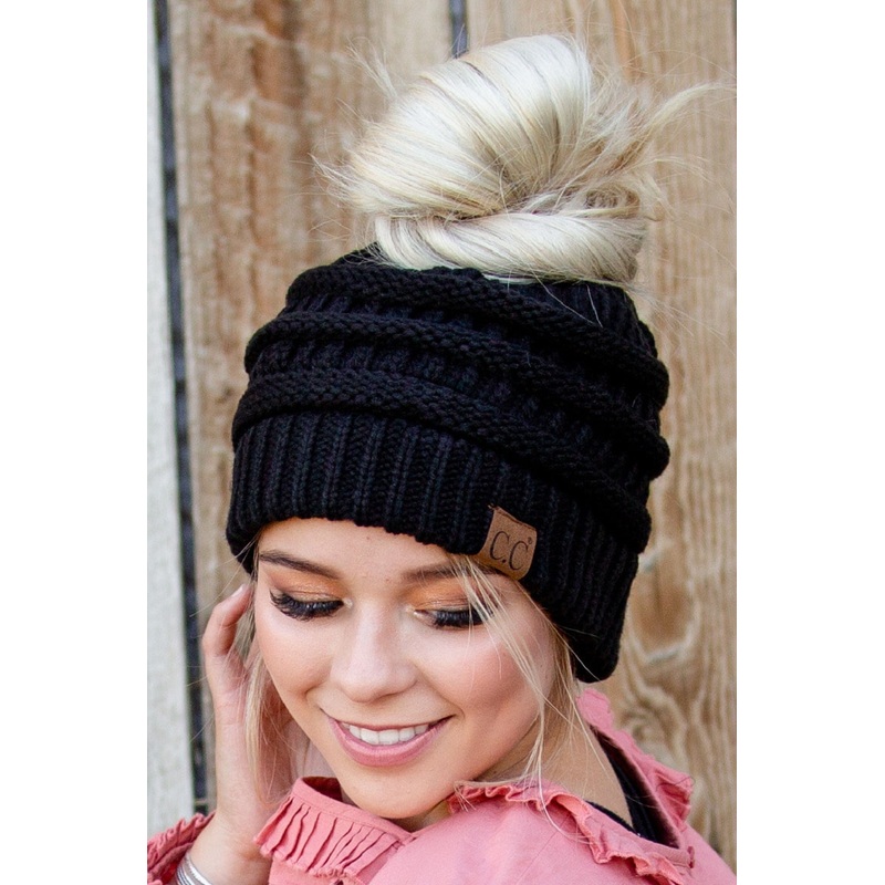 Finally, a CC beanie that can accommodate our top knots, buns, and comfy ponytails. These Authentic C.C beanies are made with the same quality you are accustomed to. They feature an elastic hole in the top to pull your hair out through!