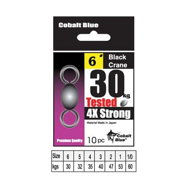 This premium 10-pack of Cobalt Blue Black Crane Swivels provides up to four times the strength of a conventional snap swivel due to the Japanese made material and construction. Enjoy reliable performancefor a wide variety of fishing applications.