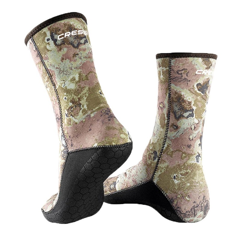 The Tecnica socks are supplied in the same camouflage design as the Tecnica line of Cressi Wetsuits, Cressi’s Tecnica Socks are designed to provide additional warmth, camouflage, and protection whilst diving. These socks are equipped with grip along the sole, and are crafted from the same quality single-lined ultra span neoprene as the Tecnica wetsuits.