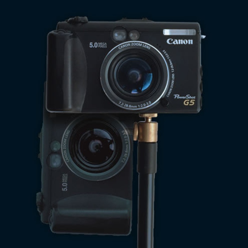The adaptor converts any bankstick or tripod to a sturdy camera stand, with the camera in landscape or portrait position. An essential for clear, sharp photography; especially useful for self-takes.