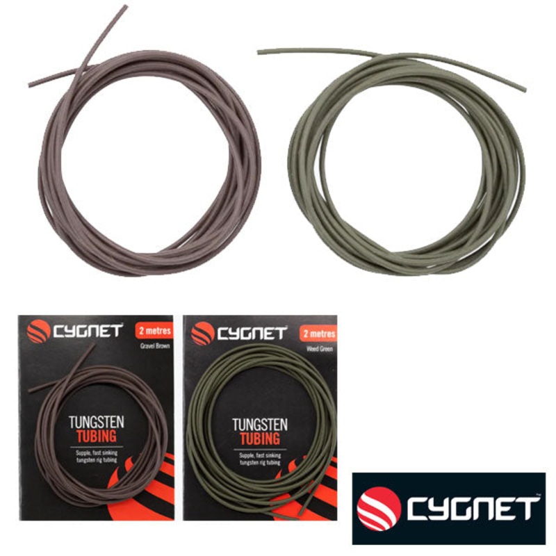 Supple, fast sinking tungsten rig tubing follows the contours of the lakebed Protects the line and the fish during the fight Easy to thread mainline through and insert into tail rubbers Available in camouflage green & brown colours to blend into the lakebe