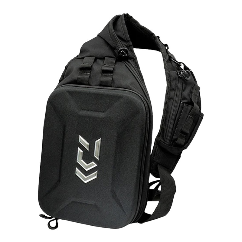 The Daiwa Sling Bag is the perfect bag for land based anglers. Made with a one shoulder/sling design it is easily swivelled around to the front of the body for easy access. The front pocket folds down to create a handy workbench for re-tying leaders or making a quick lure change.
