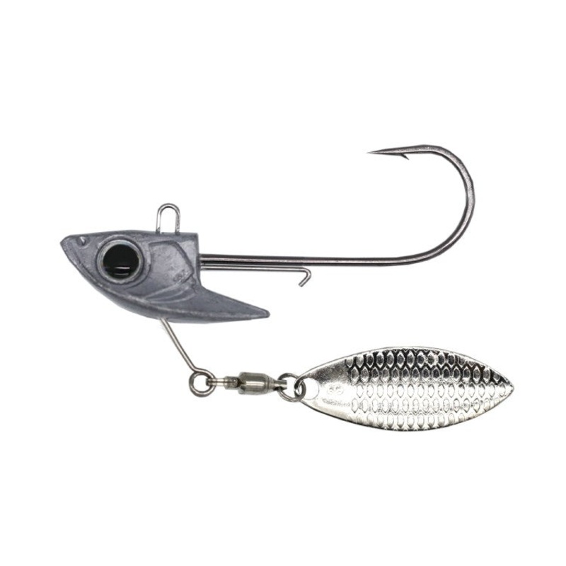 Designed on our Damiki rig jig head, the D.R. Underspin is equipped with a Viper hook, a pressed scaled willow blade and a hook-style hook keeper to ensure a strong hold on your favorite swimbaits.