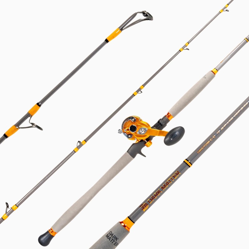 Dark Matter IO M Casting Rods are 7’3″ and use spiral wrapped Fuji guides. They are one piece. While rated 1-4 ozs, they can easily handle jigging up to 10 oz. The Avet SX G2 5.3 comes with a matching orange clamp set. The rod comes with a one-year Dark Matter warranty. The Avet comes with a one-year Avet warranty.