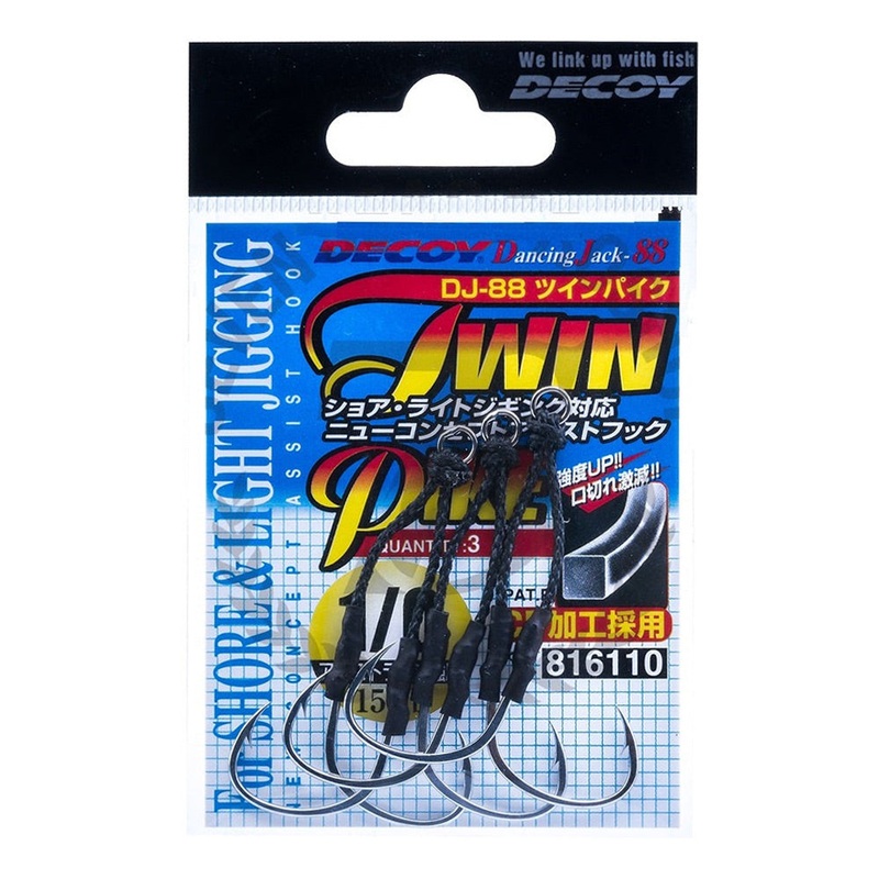 The Decoy DJ-88 Twin Pike Assist is very famous in its own right, as the Pike style hook is extremely strong for its gauge, size and shape with great penetration ability. The assist cord is also very strong with reinforced and shrink wrapped attachment for added durability.The twin double hook set is ideal for all types of jigs, from long drop to slow pitch. The Pike style of hook is has a great hook up rate compared to other twin assists out in the market.