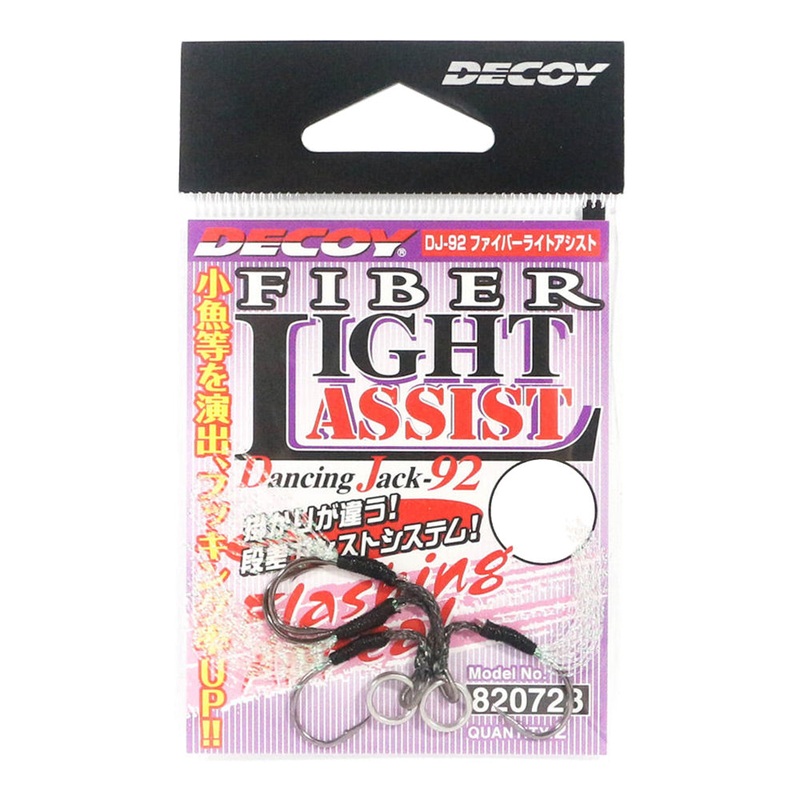 The Decoy DJ-92 Fibre Light Twin Assist Hooks are small assist hooks developed to equip to lightweight metal jigs (between 7g-40g). Ultra-sharp hooks have been equipped with shiny fibres to enhance the lures overall appeal and focus the point of attack on the main hooks location.