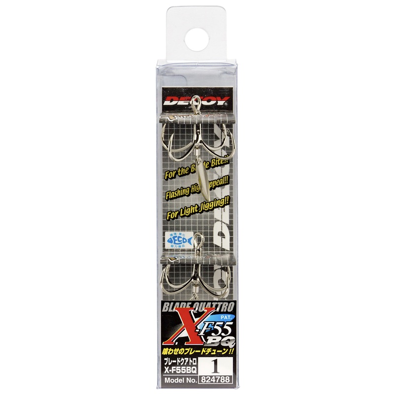 Decoy X-F55BQ Blade Quattro Decoy Quad Hooks are the next step above treble hooks for anglers looking for an added edge. Use the Decoy Quad Hooks as replacements for any trebles on crankbaits, topwater and jerkbaits. If you fish line through swimbaits, qua
