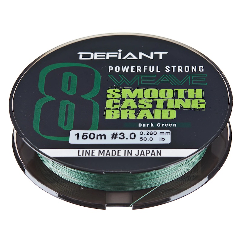 Defiant Smooth Casting Braided Line x8 The perfect choice for the seasoned swimbait enthusiast, finesse angler, and anyone in between, the Defiant 8 Weave Smooth Casting Braided Line offers all the right features for exceptional braid performance. Boasting
