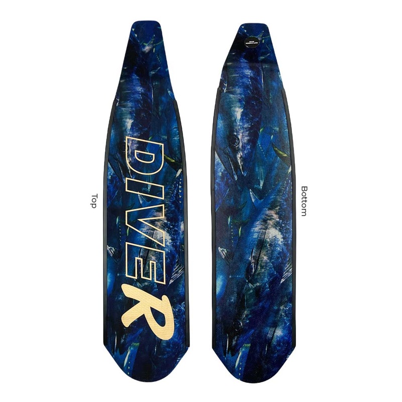 The DiveR CarbonTuna Fin Blades are an advanced, high power and lightweight blade designed for spearos and freedivers looking for superb quality with a unique look. All DiveR Blades come without foot pockets.
