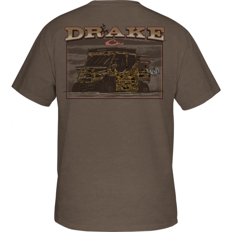 The Drake Waterfowl Graphic Tee is constructed with a 60% cotton and 40% polyester blend which supplies softness and comfort. The Drake Waterfowl Graphic Tee has a Drake logo on the front pocket and depicts a muddy ride in the marsh. From our Trucks of Drake Series of back graphic tees.