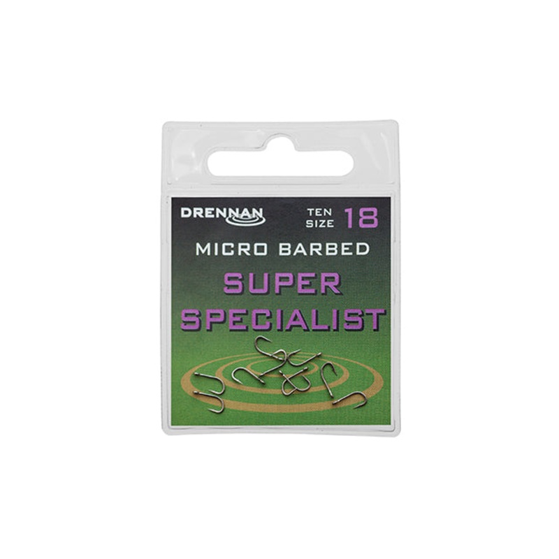 Super Specialist Micro Barbed hooks are produced in extra strong high carbon steel. Their toughness and reliability for hooking and landing big fish is legendary. For more than 20 years they have been the UKs biggest selling specimen hook and are the autom