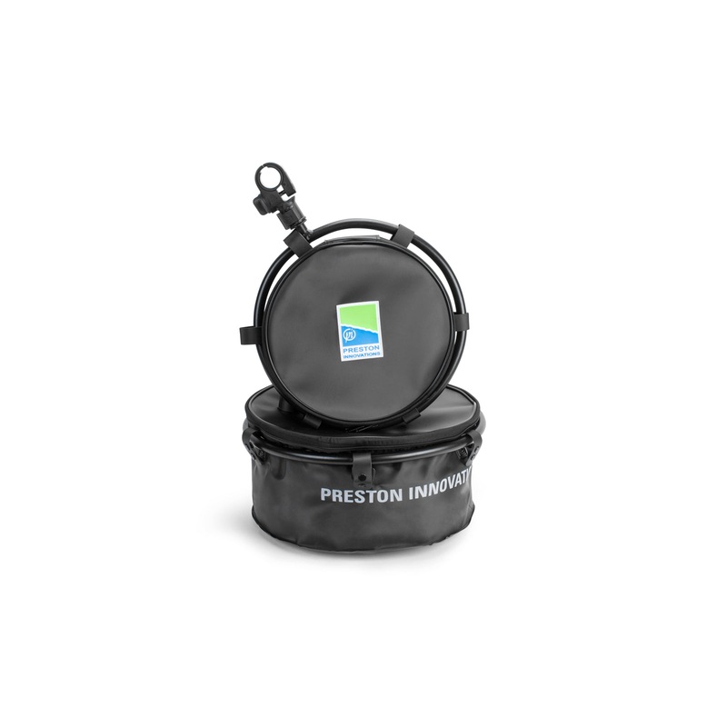 A waterproofEVAgroundbait bowl with a rigid hoop, for attaching directly to seatbox or platform legs. Collapsible for easy storage and transportation.SnapLokfor ease of transport and assembly.