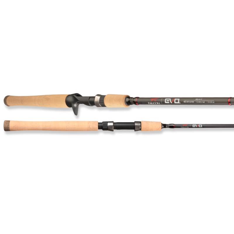 Falcon was born of freshwater action and the Evo Series is you all-around, do-it-all rod for freshwater fishing with action, style and durability a pro can appreciate and versatility every angler needs. This series combines our proven actions in graphite blanks, 100% Fuji guides and reel seats, and natural cork handles.