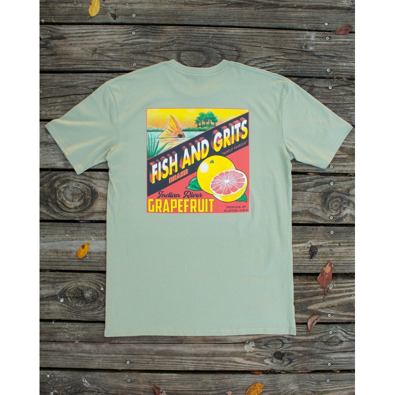 A nod to vintage citrus crate labels of past and the World Famous Indian River grapefruit, this tee is made of 5.3oz 100% combed cotton for durable, long lasting comfort. Designed and printed in Florida. available in pistachio.