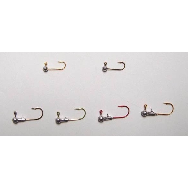 Round Jig Heads 10 pack Great for rigging the Slab Tail Jig. Just thread on and hold on! Four fish catching hook colors Colors- (hook) - Gold, Bronze, Red, Chartruse Sizes- 1/64, 1/32, 1/16, and 1/8