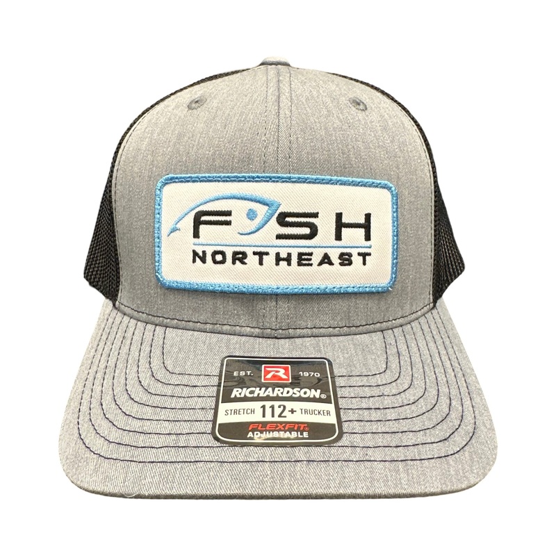 FISH Northeast embroidered patch on a Richardson 112 Stretch Trucker snapback hat. Comfortable with a chill trucker vibe.
