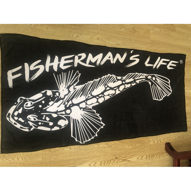 Made of polyester/nylon blend, this beach towel is lightweight and dries quickly. Iconic Fishermans Life logo in white on black matches every outfit. Measurements (approximate):140 cm x 70 cm55 inches x 27.5 inches