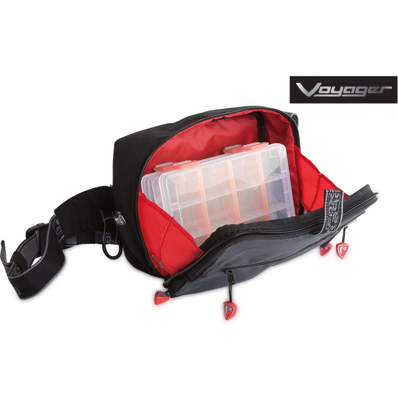 Fully loaded with tackle boxes Heavy duty zips Adjustable waist strap Coiled lanyard for tools Velcro tool retainer Size: 25 x 18 x 10cm Ripstop fabric Includes: 2 x Small Tackle Boxes Outer Main Fabric: 100% Polyester Lining: 100% Polyester Padding/Fillin
