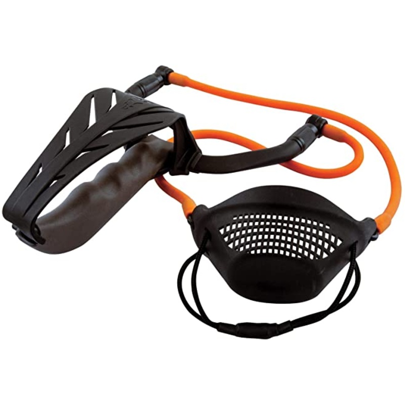 Curved ergonomic handle for increased comfort and control curve in handle corrects for, and prevents the need for, wrist flexion when baiting. Features patented knuckle defender. Swing Head fixings help to prevent elastic from twisting. Moulded Method pouc