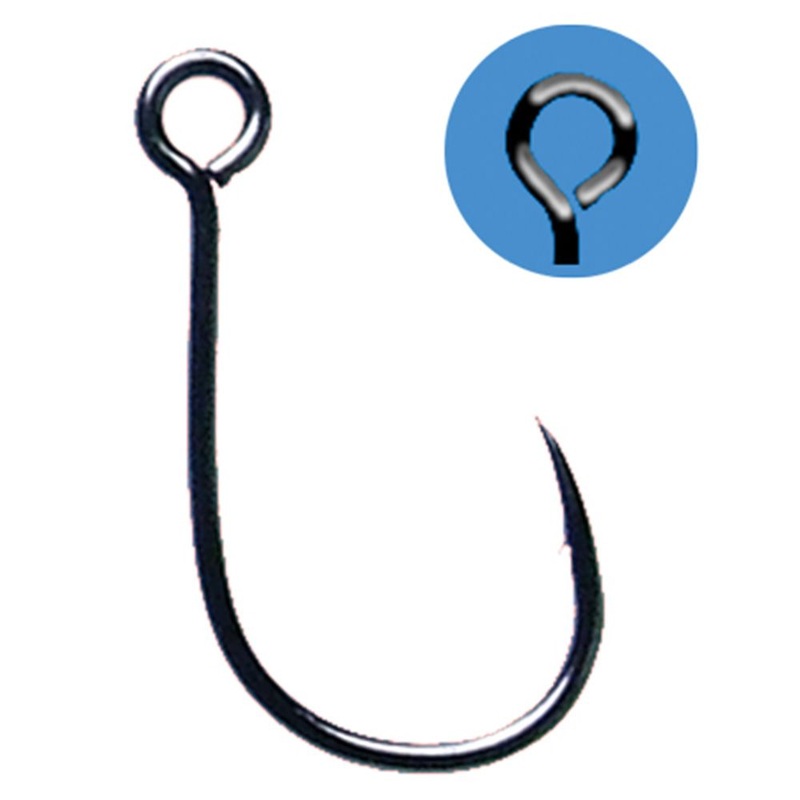 The first lure trolling hook with in-line eye (not offset like most hooks which wobble and miss strikes) these lure hooks are awesome for small trolling lures such as Tasmanian Devils and on small metal jigs. The hook point always runs straight and true, not off to one side. Once fish are hooked rarely are they lost on this hook as opposed to treble hooks which can have a slightly higher hook-up rate but considerably worse loss rate.
