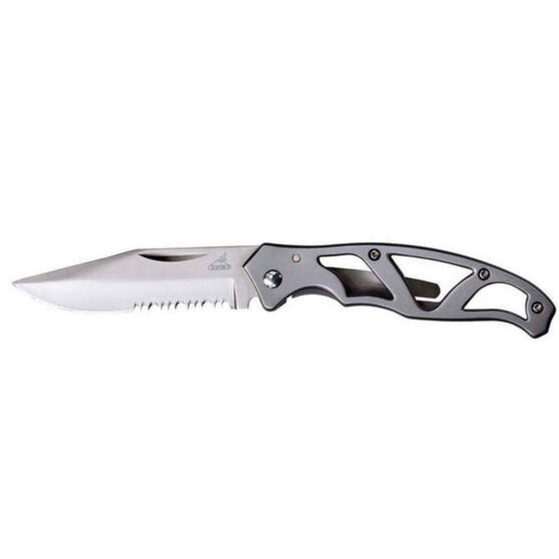 This Gerber Paraframe Mini Folding Knife is lightweight and compact, and folds away into its handle, so it can be carried in your pocket or backpack.It is extremely versatile because it features a combination of a serrated edge and a plain edge knife, so i