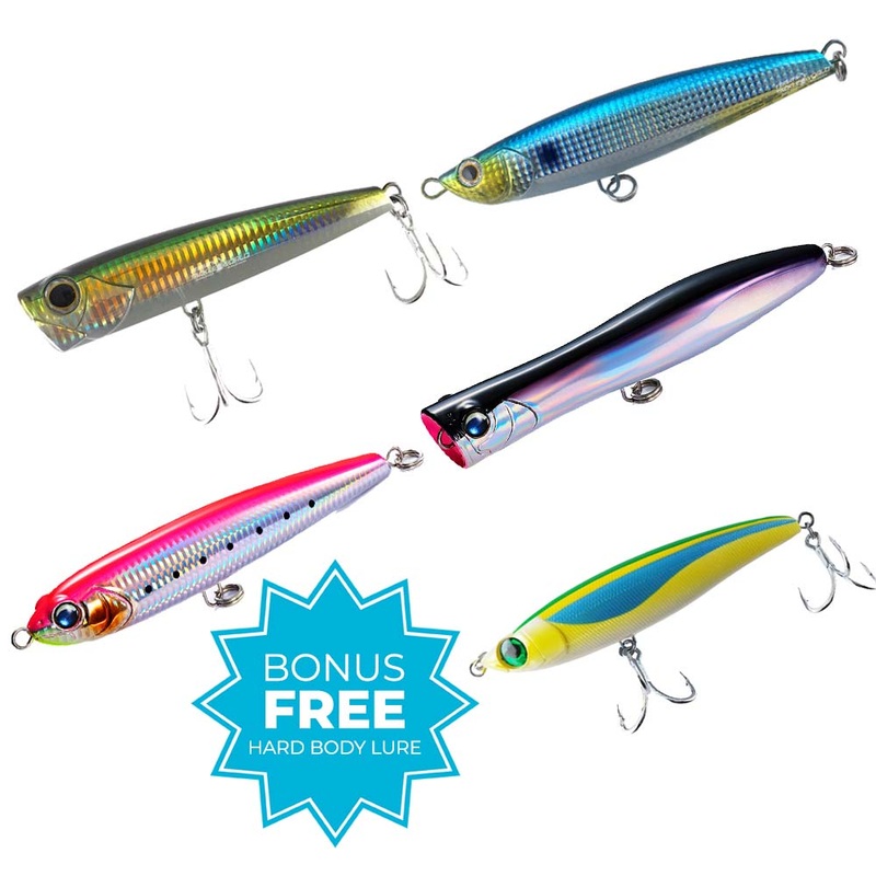 This GT Lure Pack is the perfect mix of lures for targeting GT’s. It has a mix of floating and sinking options each with their own unique features that attract GT’s in different ways, plus a bonus FREE Strada Pro Tempest Stick Bait that they’ll love too.