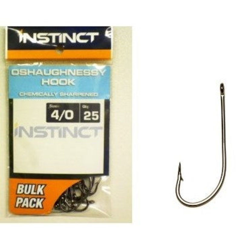 The Instinct O'Shaughnessy Hook is an ideal hook for ganging together when wanting to present a whole bait like a pilchard or a large strip bait.Chemically sharpened for ultimate penetration.A heavy duty hook with straight point and shank length greatly fa