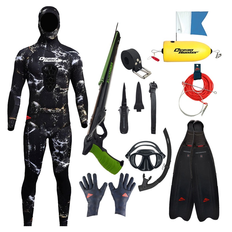 Expertly designed for spearfishers looking to take that step up, our Intermediate Spearfishing Package has everything a spearo needs to up their game and start targeting more challenging fish. This all-inclusive set features a high-quality speargun, wetsui