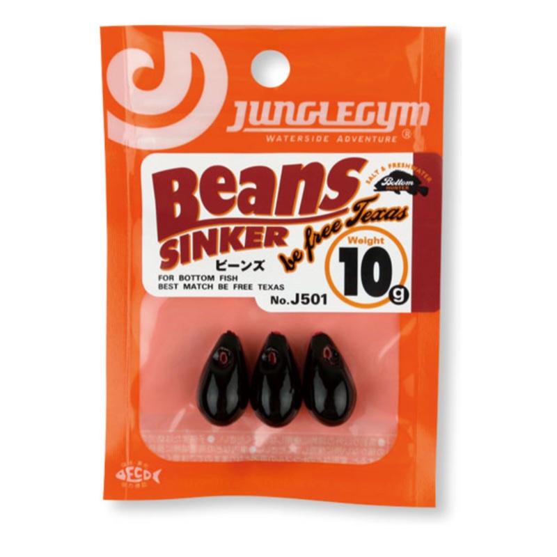 Junglegym Beans Sinker Discover the ultimate sinker for your fishing needs with the Junglegym Beans Sinker. Combining the benefits of a Texas rig and sinker-attached rig, it offers increased casting distance, fast fall, a safe line through option still wit
