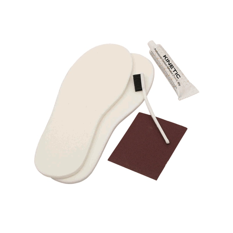 The Kinetic Felt Sole Kit is very useful for when you have worn out the inner soles of your boots or outdoor footwear and need to replace them. Key Features Material: Felt One size fit all Easy to cut to fit size Glue included Colour: White