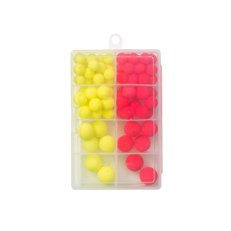 Increase your Catches with these Proven Cod Colours!! Catch more cod with these floating beads! Your baits will be hovering naturally and the strong colours attract more and bigger fish. Highly recommended! Artificial foam in 2 colours - Red and Yellow Box
