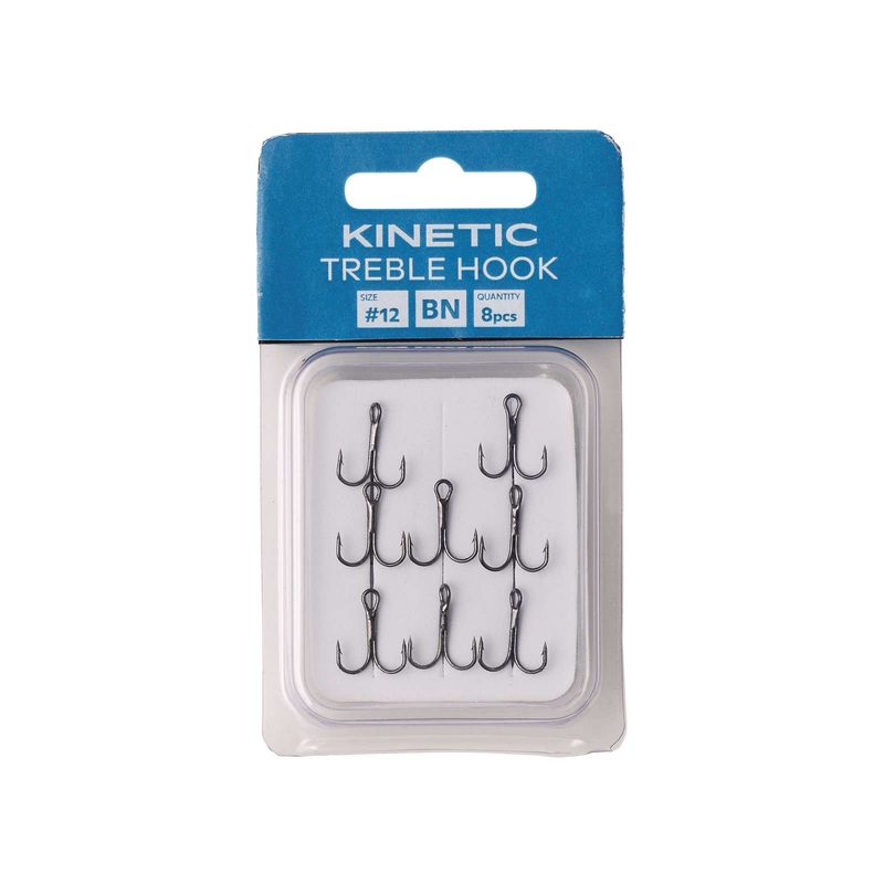 Strong and reliable, the Kinetic Treble Hooks are constructed of strong high-carbon steel for exceptional durability, so you can fish with complete confidence. They have a round, wide-gap bend and ultrasharp points that easily hook fish and won't let them