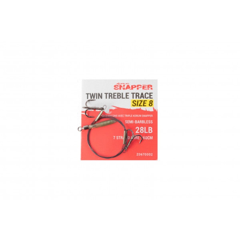 KORUM SNAPPER TWIN TREBLE TRACE SIZE 8 28lb 60cm SEMI BARBLESS