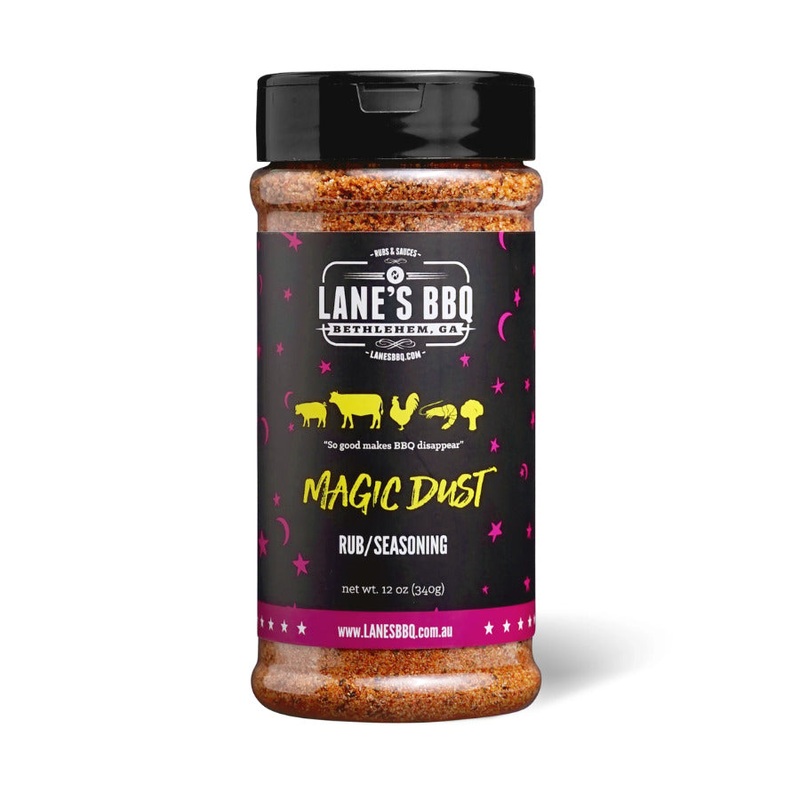 Meet Lane's Magic Dust - the only seasoning you'll ever need! This award-winning, slightly sweet, all-purpose BBQ rub presents a tantalising mix of sweet, salty, and smoky flavours, destined to become the crowd-pleaser at every meal. NEED SOME INSPO?Magic