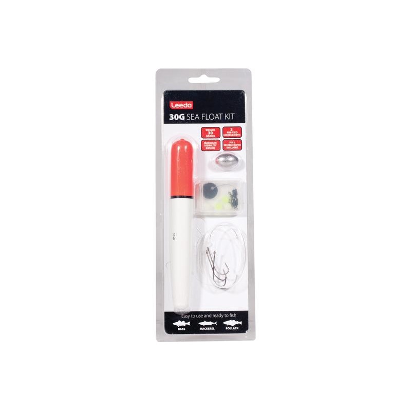 A high impact foam float with 3 pre-tied hook lengths, a spinner, a drilled bullet weight, and accessories including beads, float stops and a swivel. This kit is great for targeting fish like mackerel, pollack and bass and is simple to use, just tie on a hook length and youre ready to go.